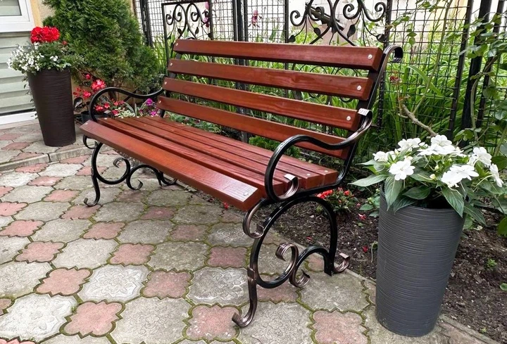 Лавка садова кована Tobi Sho Дольче з підлокітниками для дачі, тераси 130 см колір черешня