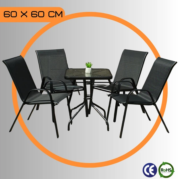 Комплект Садових Меблів Квадратний Стіл + 4 Крісла Текстилен 4Points Udine-4 Чорний для дачі для тераси для лоджії для балко