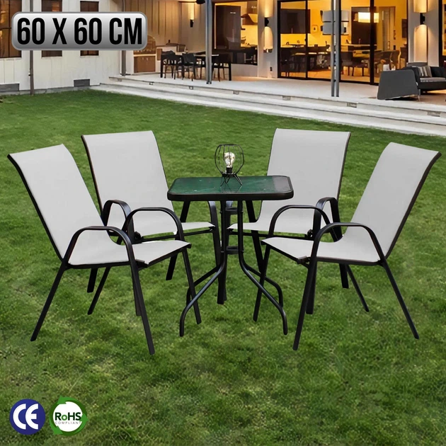 Комплект Садових Меблів Квадратний Стіл + 4 Крісла Текстилен 4Points Grado-4 Сірий для дачі для тераси для лоджії для балкон