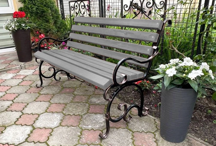 Лавка садова кована Tobi Sho Дольче з підлокітниками для дачі, тераси 130 см колір антрацит