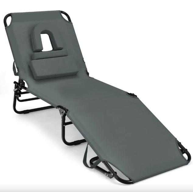 Шезлонг Costway Hanna розкладний з отвором для обличчя сірий