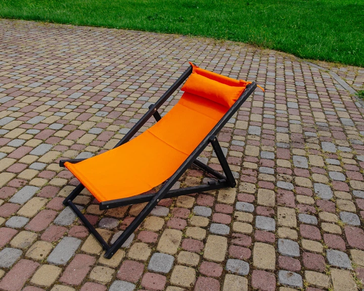 Розкладне дерев’яне крісло шезлонг з тканиною, для дачі, пляжу чи кафе. Крісла садові терасні дерев'яні. Лежак шезлонг XRMAS