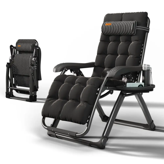 Розкладне крісло шезлонг садовий із матрацом та подушкою WCG FCB-S06PP розкладачка лежак кемпінговий для відпочинку на приро