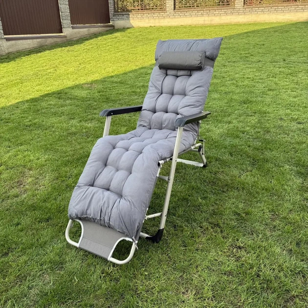 Садовий шезлонг IdealGarden тканинний + матрац, сірий текстилен + метал, 1786695 см, 110 кг