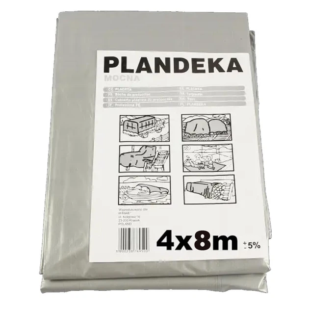 Тент PLANDEKA тарпаулин 4х8м, 120г./м2 с кольцами, сірого кольору