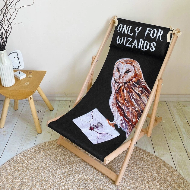 Шезлонг розкладний дерев’яний з подушкою та принтом Only for wizards Гарри Поттер - садовий лежак для кафе, тераси, балкона