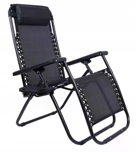Крісло-шезлонг Orion Black з підголівником та підсклянником, шезлонг чорного кольору для саду та пляжу