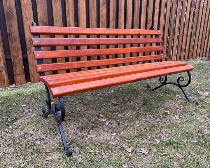 Лавка вулична дерев'яна з спинкою Асорти без підлокітника 130 см червоне дерево