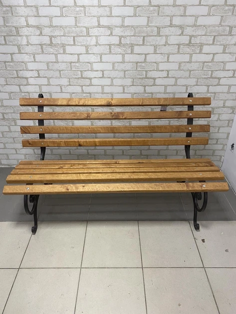 Лавка дерев'яна садова вулична рама металева чорна Асорти без підлокітника 1,0м