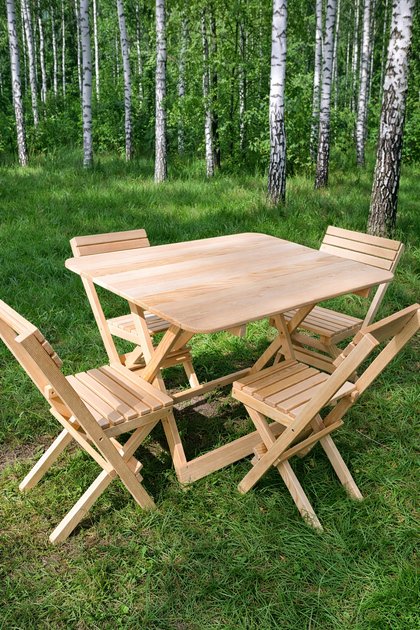 Дерев'яний розкладний набір 100х75см стіл + 4 стільці зі спинкою