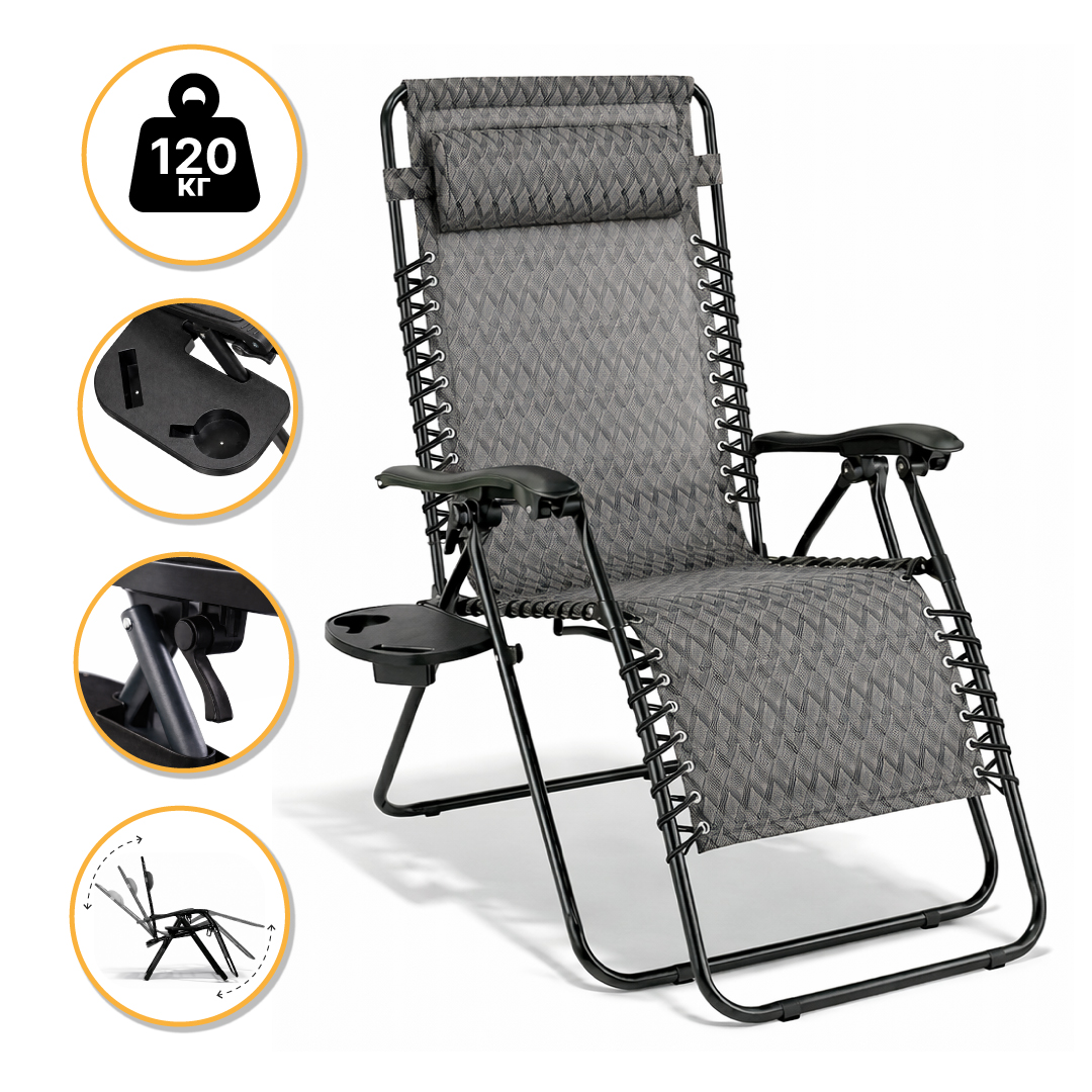 Розкладне крісло шезлонг LEOBRO Zero Gravity Grey (LB-ZGC-F1-GRY) LB-LB-ZGC-F1-GRY