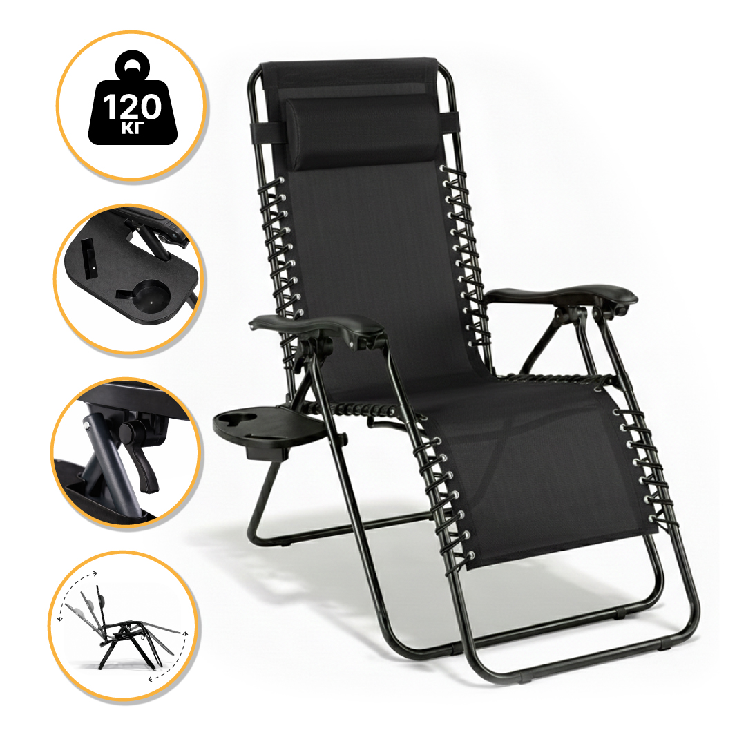 Розкладне крісло шезлонг LEOBRO Zero Gravity Black (LB-ZGC-F1-BLK) LB-LB-ZGC-F1-BLK