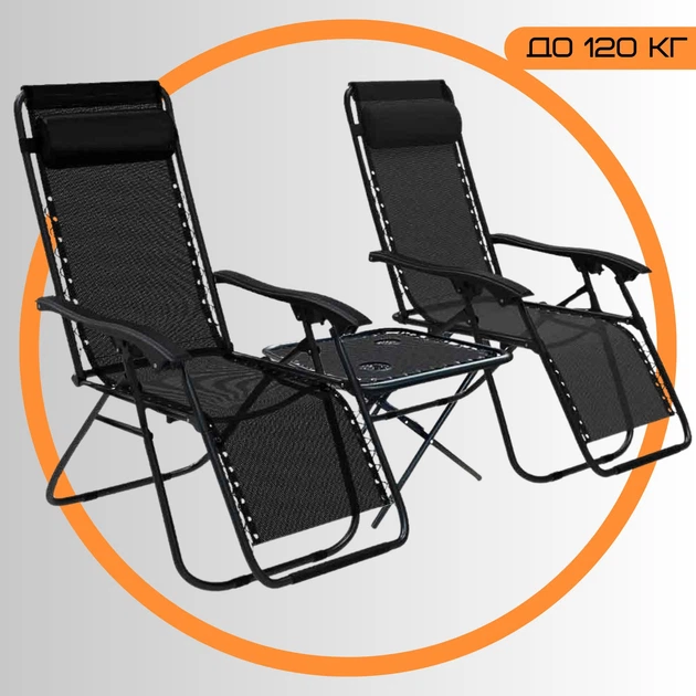 Комплект Садовий Розкладний Шезлонг + Столик для Дачі Zero Gravity XXL Чорний