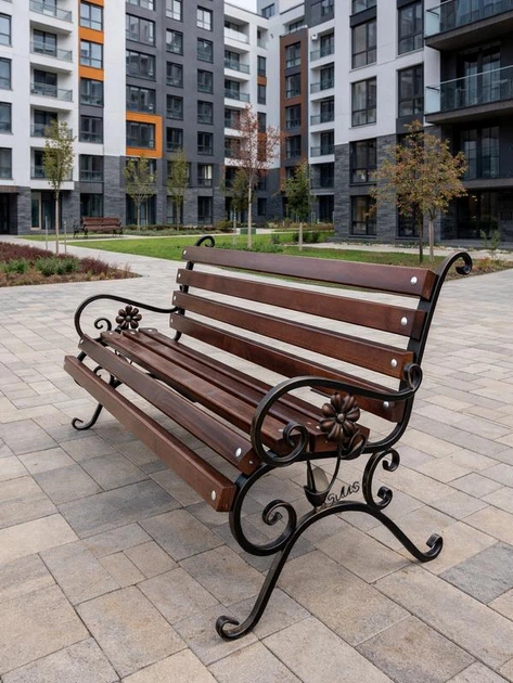 Лавка садова кована Tobi Sho без підлокітників 130 см колір черешня