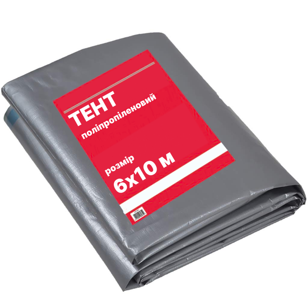 Тент 6х10м 100г/кв.м поліпропіленовий водостійкий у/ф захист люверси, сірий