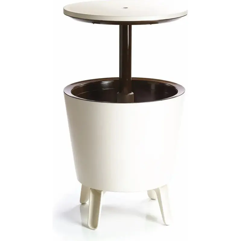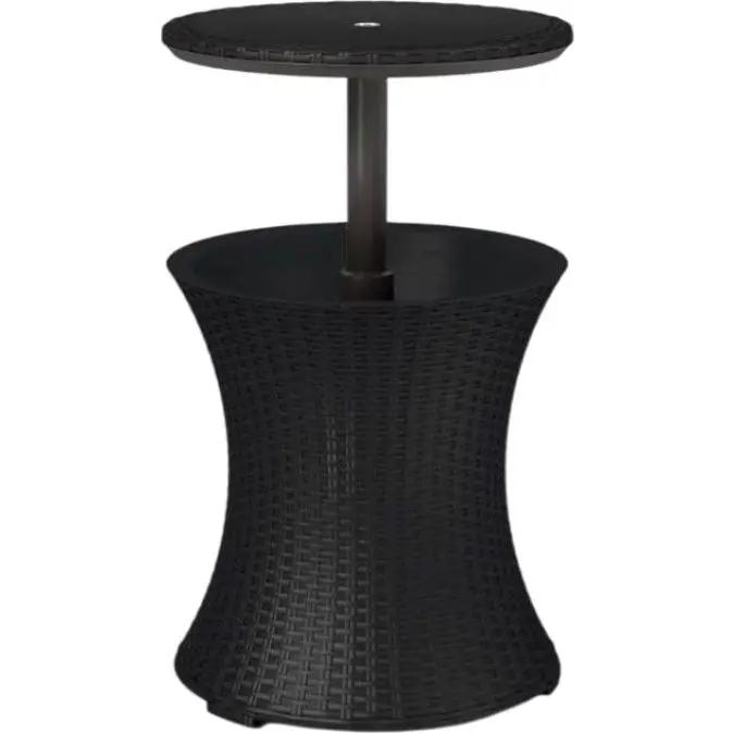 Стол-бар Keter Cool Bar Rattan коричневый 230902 изготовлен из пластика. C контейнером для охлаждения напитков. Легко транспортируется и раскладывается.