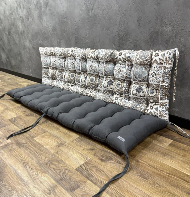 Подушка на садові меблі комбінована Abstraction blue панама 100х50х50 см сіра