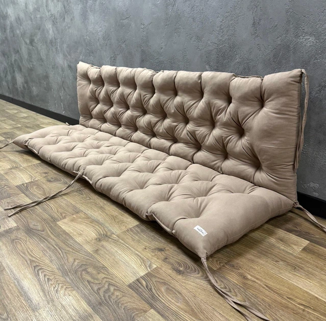 Подушка з каретною стяжкою на садові меблі панама 100х50х50 см капучино