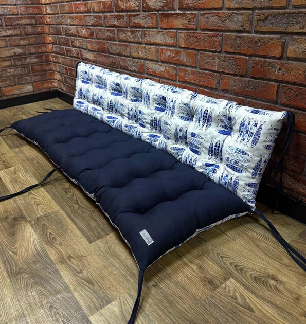 Подушка на садові меблі комбінована Ethno fish blue панама 100х50х50 см синя