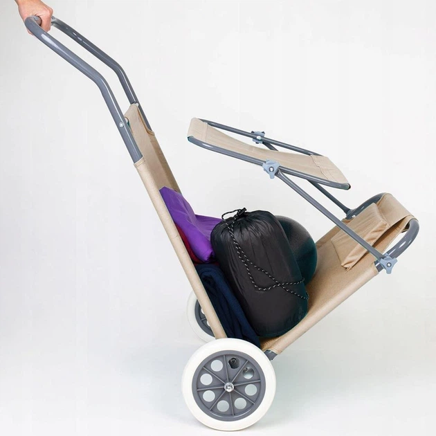Лежак трансформер пляжний, крісло садове з козирьком до 120 кг бежевий
