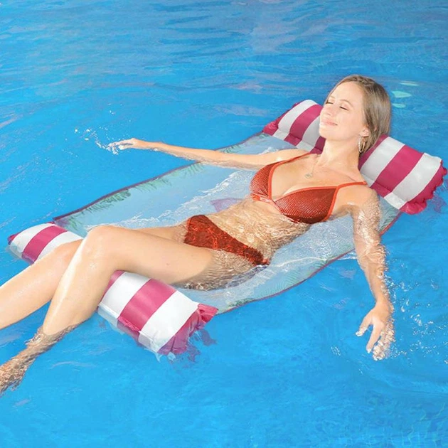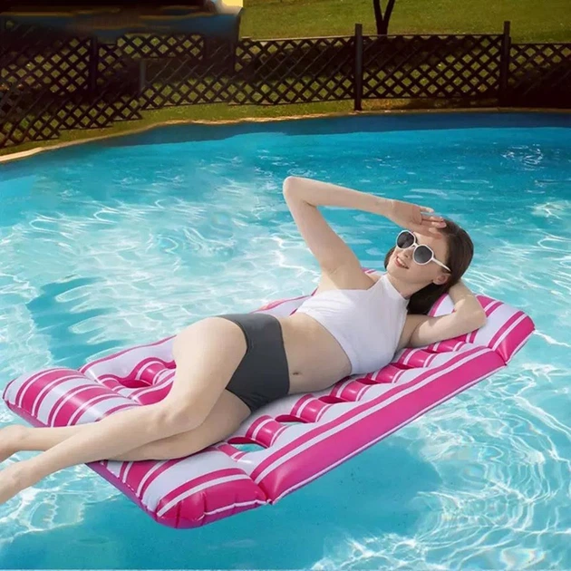 Матрац для плавання надувний з сіткою та підголовником, у смужку, Рожевий, 130x70см