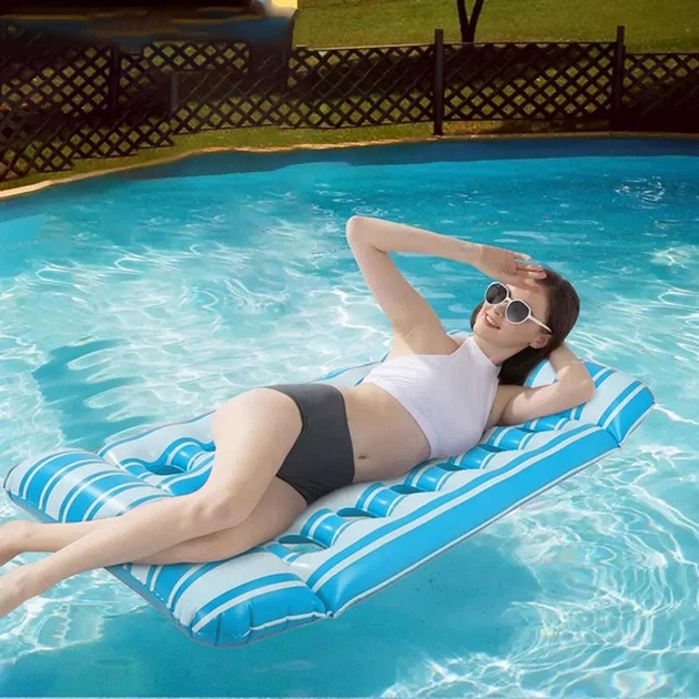 Матрац для плавання надувний з сіткою та підголовником, у смужку, Блакитний, 130x70см