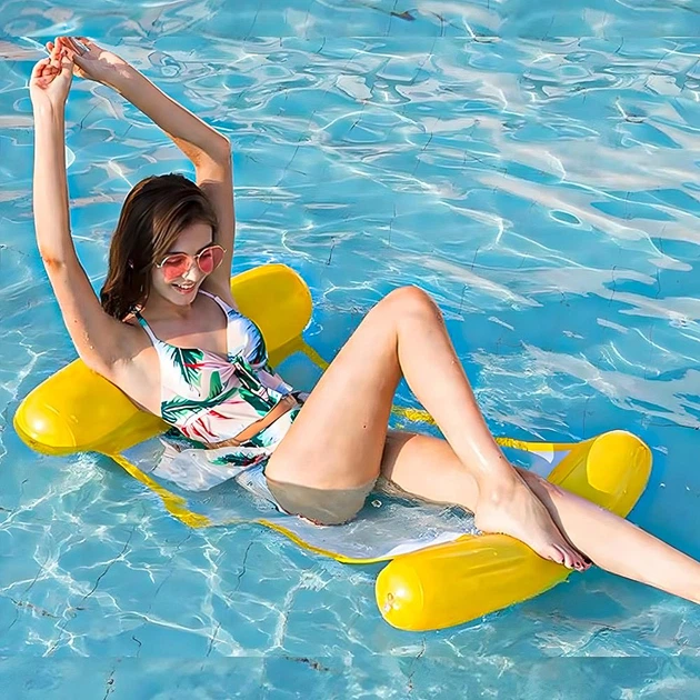 Матрац для плавання надувний "Гамак" з сіткою та підголівником, Жовтий, 120x80см
