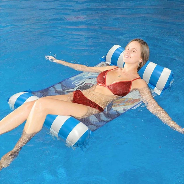 Матрац для плавання надувний "Гамак" з сіткою та підголівником, Блакитний, 120x80см