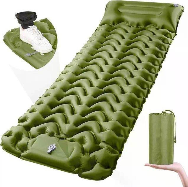 Матрац надувний туристичний потовщений 10 см килимок з вбудованим ножним насосом і подушкою 15 см міцний карімат, що самонад