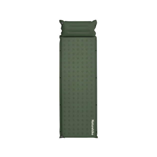 Матрац туристичний із подушкою, самонадувний одномісний Naturehike CNK2550WS025, вологостійкий, 200х65х6 см, зелений