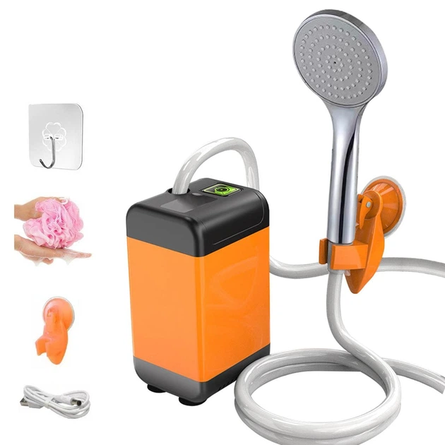 Портативний акумуляторний туристичний похідний душ з насосом та батареєю 2000 мАг для кемпінгу, авто та дачі, переносний душ