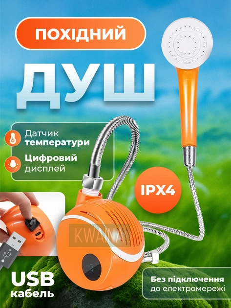Портативний акумуляторний похідний душ з насосом та дисплеєм та індикатором температури акумулятор 7800 mAh USB