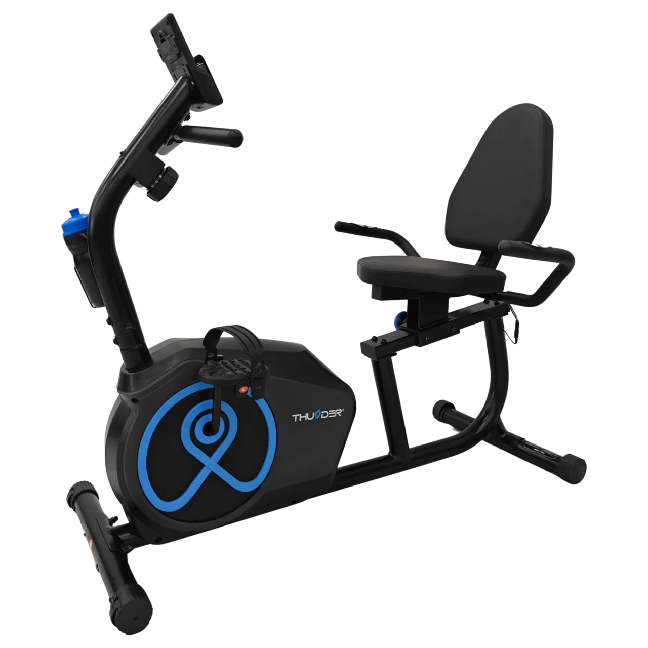 Велотренажер горизонтальний JET THUNDER Призначення: Для домашнього використання Максимальна вага користувача : 110 кг Велотренажер горизонтальний JET від THUNDER — це поєднання комфорту та ефективності, яке забезпечує безпечні та приємні тренування в комфорті вашого дому, допомагаючи досягти кращої фізичної форми та спалити калорії. Основні переваги: Зручне