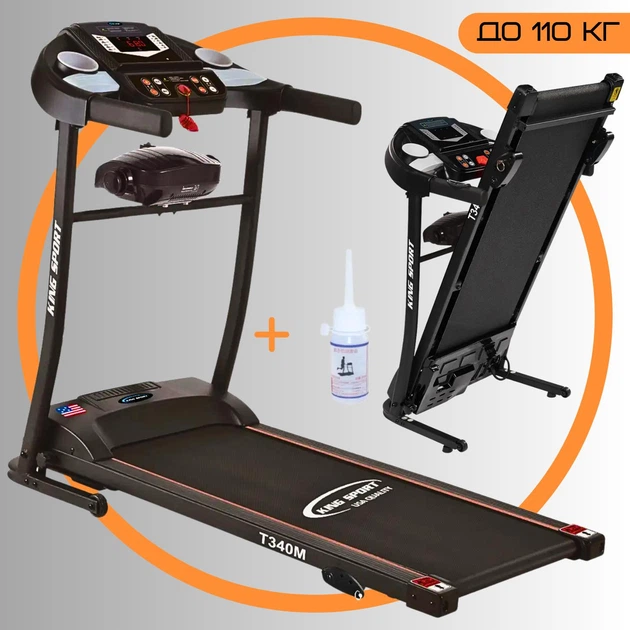 Бігова Доріжка з Масажером до 110 кг з Кутом Нахилу Cкладана King Sport T-340M Електрична для Дому + Мастило у Подарунок