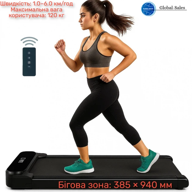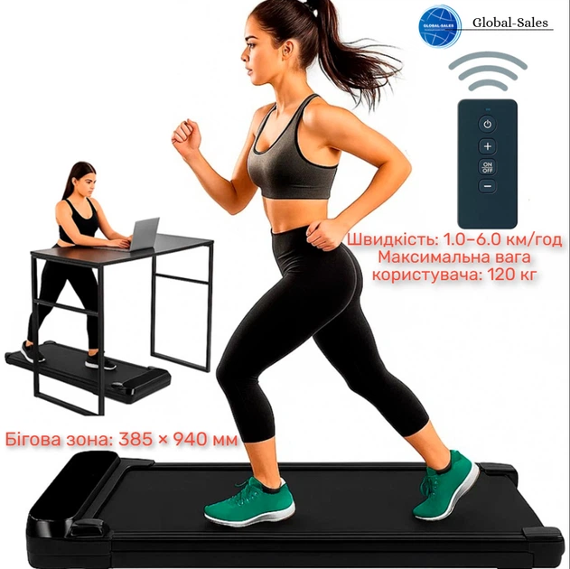 Бігова доріжка до 120 кг, 1100 Вт, 6 км/рік тиха, компактна Treadmill XM-U1 для дому, квартири чи офісу