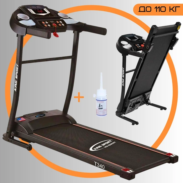 Розкладна Електрична Бігова Доріжка для Дому до 110 кг з Кутом Нахилу King Sport T340 Електрична для Дому + Мастило у Подару
