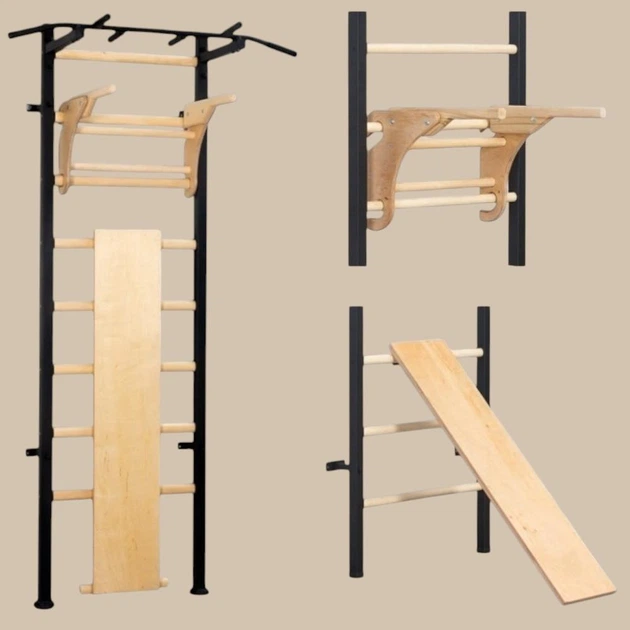 Шведська стінка металева з дерев'яними перекладинами турнік бруси знімна гімнастична дошка профілактор