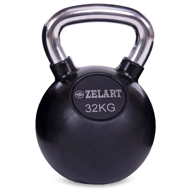 Гиря тренувальна цільна гумова з хромованою ручкою Zelart TA-5162-32 вага 32кг чорний