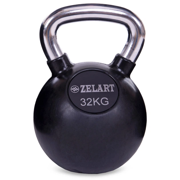 Гиря 32 кг тренувальна цільна гумова з хромованою ручкою Zelart 1 шт чорна TA-5162-32