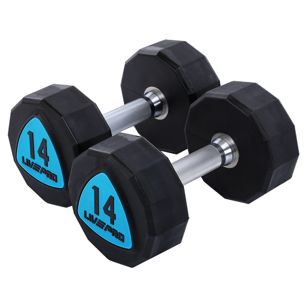 Гантелі цільні професійні з поліуретановим покриттям LiveUp LP8003-14 2шт по 14кг чорний-синій
