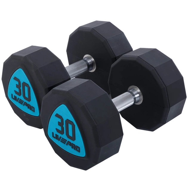 Гантелі цільні по 30 кг професійні з поліуретановим покриттям LiveUp LP8002-30
