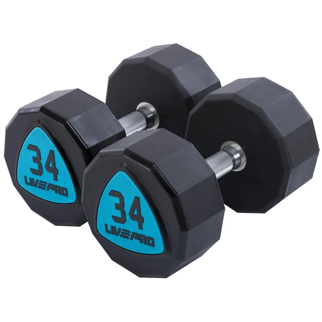 Гантелі цільні професійні з поліуретановим покриттям 68кг 2шт по 34кг LiveUp чорно-синій LP8003-34