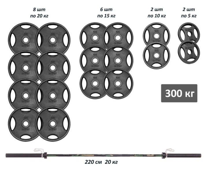 Штанга олімпійська 240 кг із гумовими металевими дисками RN-Sport