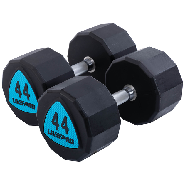 Гантелі цільні професійні з поліуретановим покриттям LiveUp LP8003-44 2шт по 44кг чорний-синій