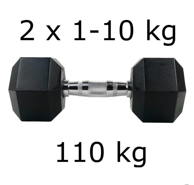 Гантелі UnderFit прогумовані Hex 2 х 1-10 кг (110 кг)