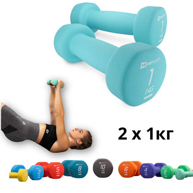 Гантелі для фітнесу неопренові круглі Hop-Sport HS-V010DR 2x1кг бірюзовий