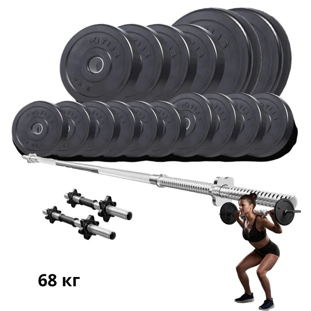 Набір Elitum Titan 68 кг зі штангою та гантелями набірними гриф прямий для комплексних тренувань