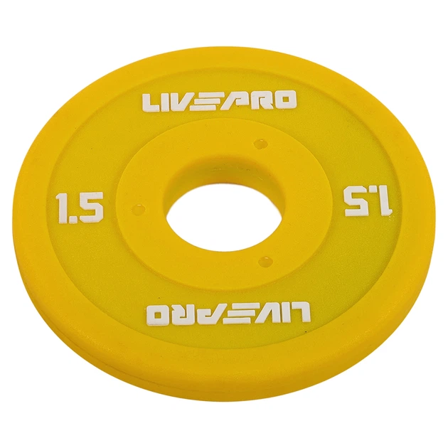 Млинці диски 1.5 кг Сталь поліуретанові Внутрішній діаметр диска 50 мм 1 шт LiveUp жовті LP8028-15