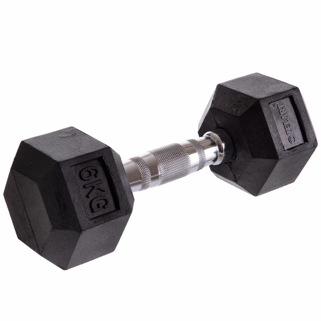 Гантель цільна шестигранна гексагональна ZELART (1шт) Pro 6кг (сталь хромована, гума, вага 6кг) (TA-5159-6)