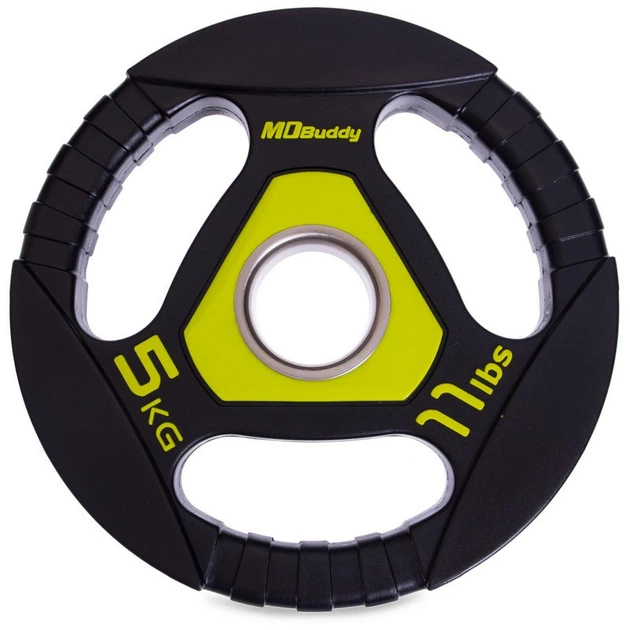 Млинець поліуретановий 5 кг для штанги з потрійним хватом MD Buddy 2677-5 1шт діаметр 51мм Black
